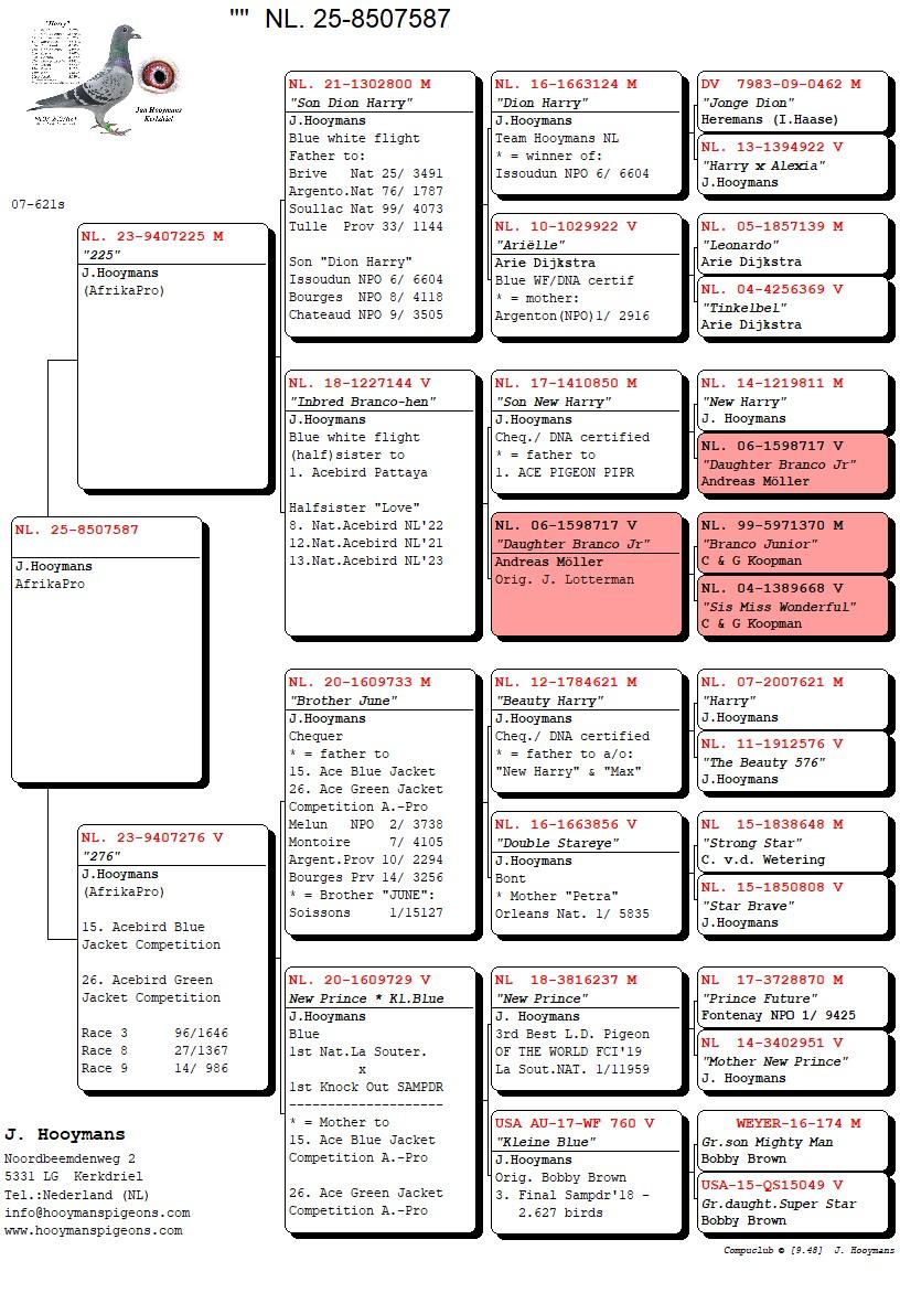 ZZ..LOT 114 AFRIKAPRO AUCTION 4-Team Hooymans.BE I-NL-24-8506700 -SIRE:NL. 19-1023134 M Halfbro Red Harry J. Hooymans Team Hooymans BE 2x 1st Provincial Tulle Prov 1/ 752 Nat 4/ 4451.———-DAM:NL. 18-5002006 V “Daughter Harry Jr.” J.Hooymans Blue/ DNA certified mother to:Montoir Prov 1/ 259, Vierzon Nat 4/15527, Chateau Prov 5/ 2333.SEE PEDIGREE!!!