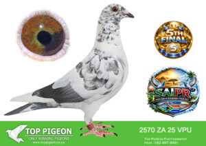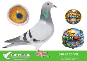 LOT 15 SAIPR SUMMER AUCTION 1 – Cannistaro 2- VSL 546 2025 -2ND FINAL RACE WINNING R200 000.00—-6TH ACE BIRD——–SIRE:201 ZA VSL 22 KAMAKAZI RETURN Colou BB GANUS SUPER BREEDING SON OF KAMAKAZI SIRE OF MULTIPLE WINNERS AND TOP PERFORMERS. SIRE TO 2ND AIPR SUMMER FINAL AND 5TH OVERALL ACE PIGEON 2026———–DAM:1014 ZA VSL 24 ONE LOFT QUEEN Colou BB ALL ACES BRED OUT OF THE WORLDS BEST FERFORMING OLR CHAMPIONS. BRED FOR STOCK AND SHE WILL BE A FUTURE CHAMPION. DAM TO 2ND SAIPR SUMMER FINAL AND 5TH OVERALL ACE PIGEON 2026 WHAT A START TO A BREEDING CAREER.SEE PEDIGREE!!!!