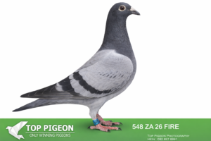 .LOT 1 FULL SIBLING TRPF WINNER – ZA 26 FIRE 548 -FULL SIBLING TO 1ST TRPF FEDERATION WINNER Three Sister on 992 m/m 791km For Dirk Grobler. 1st Alberton Club TRPF Three Sister on 992 m/m 791km For Dirk Grobler——-SIRE: Direct son of the outstanding “Kim 82” (1 MPKD 21 ZA) – a proven breeder and sire of a TRPF Federation Winner (791km, Three Sisters) for Dirk Grobler, also winner of 1st Alberton Club. The sire line is heavily built on the famous Kaasboer dynasty, featuring multiple top-class pigeons such as: “Lucky Kim” – raced at SC Million Dollar Race, top Kaasboer genetics Direct influence of Kaasboer himself (multiple times in pedigree) Strong infusion of Flor Engels blood, known to cross exceptionally well with Kaasboer This line is renowned for producing ace pigeons and consistent winners, especially in middle to long-distance competition.————🧬 DAM — 355 ZA 18 GJT Strain: Smuts × 810 Color: Blue Bar (BB) Key Achievements & Breeding Value Dam to the 1st TRPF Federation Winner Three Sisters – 992 m/min – 791 km for Dirk Grobler Dam to the 1st Alberton Club Winner Same race, same performance line Directly tied to the SUPERBREEDER 810 dynasty, one of the strongest breeding lines in South Africa. Bloodline Highlights Sire is bred direct from the famous Nr.1 pair. Dam is a grandchild of “SUPERBREEDER 810”, a foundation bird responsible for multiple winners and top breeders. Includes “Boytjie,” “Mooie 810,” “Son Superbreeder 810,” and “Superbreeder 8855” — all elite 810‑line producers.SEE PEDIGREE!!!!!