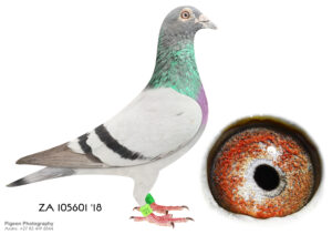 LOT 11 CORRIE NAUDE – ZA 18 105601 -SIRE:31214 ZA 14.Houben-Clausing This is my no. 1 breeding Houben-Clausing cock. He is a son of ZIKO SA of which this was the last baby before he became unfertile. It is one of the last cocks bred like this that I have in my stock loft. Excellent proven breeder. The Dam was bred by Henri.———–DAM:12967 GPU 16 BEST MIDDLE DISTANCE BB Houben-Clausing This was the best pigeon in the Gauteng Pigeon Union in the Middle Distance in 2017. Smithfield 20th 1415 pigeons 465 km Gariep dam 4th 1365 pigeons 537 km Springfontein 30th 1234 pigeons 495 km.SEE PEDIGREE!!!!