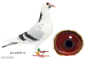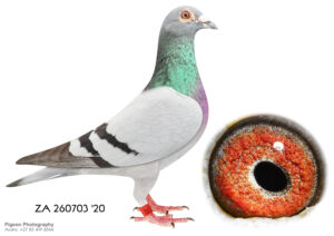 LOT 22 EARLY FEBRUARY – ZA 21 PWDU 2835 BBAR – Blou Bul x Kittel cock . Dam to this cock 399 Kittel x Blou Bul is a producer of big winners , she is also dam to Dinokeng star Stingray . Two great pigeon families combined in ZA 21 PWDU 2835 he surely has a bright future as breeder . Silky feathered strong structured cock .SEE PEDIGREE!!!