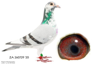 LOT 20 EARLY FEBRUARY – ZA 20 MPKD 339 -SIRE: 213 VSL 18 ZA . INBRED SABLON . THIS COCK IS BRED FROM A MOTHER AND SON MATING. HIS MOTHER IS THE NON KAASBOER HEN THAT BRED THE MOST WINNERS FOR GJT LOFTS. HIS MOTHER IS A DIRECT CHILD OF SUPERBREEDER 810 . —-DAM: 545 WRRPA 15 ZAD . KAASBOER . THIS HEN IS A HALF SISTER TO “THE BENCHMARK” . SHE IS A DAUGHTER OF THE FAMOUS “HEIDI”. SEE PEDIGREE!!!