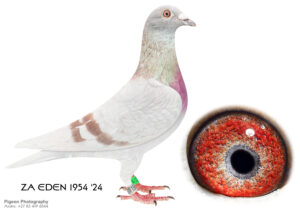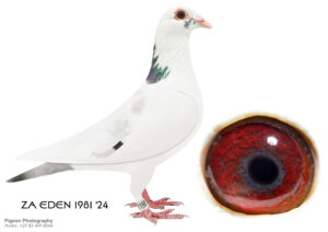 LOT 28 CORRIE NAUDE – ZA 24 EDEN 1919 -SIRE:260703 ZA 20.4 X Winner Kannibaal inbred I have had a lot of pleasure out of this cock. He has bred me a lot of winners every year. An excellent stock cock. Bred 1st place ERPF federation winner in ERPF in 2025 from Worchester (250 km).——DAM:260736 ZA 20 KANNIBAAL BB 4 X Winner Kannibaal 4 X Winner Kannibaal. This hen have bred winners for us as well. Bred 2nd place ERPF federation winner from Kimberley (650 km).SEE PEDIGREE!!!!