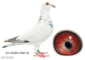 .LOT 4 EXCLUSIVE AUCTION – ZA BENZ 24 3627 -BRED BY PIGEON PALACE —-18TH FINAL SAIPR OLR—OWN SISTER TO BEST BIRD IN GAUTENG PROVINCIAL COMBINE 2024 FOR NINJA LOFTS (FORMYN DE KOK) . TWILIGHT / KITTEL CROSS———-SIRE:ZA 20 TRPF 7712. SUPER SON “NUMBER ONE”.BROTHERS AND SISTERS ARE FANTASTIC RACERS AND BREEDERS. TOP RACERS ARGUABLY ONE OF THE BEST BRED FROM THIS PAIR. NOW AT STOCK. HIS FIRST BABY WON. THIS COCK WILL FOLLOW IN HIS FATHER’S FOOTSTEPS. SUPER PIGEONS TOP OF THE LIST.——–DAM: ZA 21 ABL 368 “ABL KITTEL”. HALF SISTER TO MOTHER OF SANPO GOLD MEDAL WINNER 2021 ALLROUND “TURBO KITTEL”. INBRED TO FAMOUS KITTEL 1ST NATIONAL ACE KBDB 2013. THIS HEN IS DAM TO A SUPER RACER AND WINNER FOR GYS & FORMYN IN THE STRONG TRPF. SEE PEDIGREE!!!