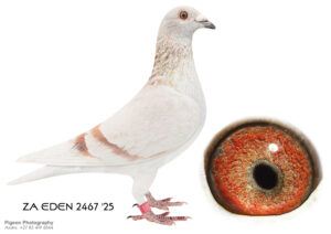 .LOT 2 EXCLUSIVE AUCTION – ZA 23 KGL 28 -Top racer bred from an outstanding click pair.This hen has soft feathering and outstanding muscle. quality.Excellent winning family of pigeons. Her siblings were top performers at Afrika Pro. In the last edition ’25 her brother was in contention to win the prestigious Green Jacket.—————-SIRE:BE-19-6016575 C ‘Elektro 575’ HOK JOS VERCAMMEN.FATHER IS ‘ELEKTRO JUNIOR’: 5. NAT ACEBIRD KBDB MID DIST 2017, FATHER TO WINNERS!MOTHER IS ‘MISS MUSTANG’ 2. NAT ZONE 3. NAT CHATEAUROUX SISTER TO ‘LILLY’ GRANDSON ELEKTRO’————-DAM:ZA-15-301 H ‘Mirage 301’ Pigeon Palace. Union winner and top racer. Halfsister to super racing pigeons. Great breeder. Click hen to ‘Elektro’. Together they bred 9 winners as a pair. Four federation winners in one year out of 6 babies bred in strong TRPF/GRPF. Her halfsister won Leeu Gamka 1000km by nearly an hour in the strong Crusaders club & PTA union. On the same day another. halfsister was 2nd union in the same race after her loftmate.SEE PEDIGREE!!!!