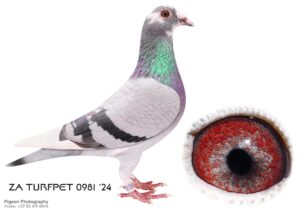 .LOT 5 HOT THURSDAY – ZA 24 CRU 1925 -SIRE:9644767 NL 23.Alias “GRIZZLE PORSCHE” Strain: Porsche 911 X Goed Grijs Color: Grizzle The sire is inbred from a full brother to sister mating from PORSCHE 911. The dam is inbred from a full sister and brother bred from a direct son of GOED GRIJS x OLYMPIC NICOLE.———-DAM:9508754 NL 23 .Strain: Pipa Elite Center Color: Blue Bar Grandchild to”PORSCHE 911″ x “LOUISE”. Bred from a full brother and sister mating. Dam to ZA ABL 1310 2024. 4th SAIPR SUMMER FINAL 2025. Equal winner on the drop ,lost by 4 seconds.SEE PEDIGREE!!!!