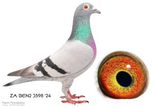 .LOT 3 HOT THURSDAY – ZA 24 BENZ 5786 -‘Goed Grijs Mealy’ Pigeon Palace Mealy Grizzle Excellent Goed Grijs genetics.G/Grandson Grizzle Mama exceptionel breeding hen PIPA. Dam to Grizzle Best Kittel winner of 17 x best 1% over 20 races. 2nd Nat Ace & 5 x 1st prize!Halfsister to super One loft racer ‘Mienke’ a phenomenon at Dinokeng lofts.————–SIRE:BELG-23-6159300 C ‘Goed Grijs PIPA’ Vermeerbergen-Wilms.Grandson Grizzle. Mama exceptionel breeding hen. Dam to Grizzle Best Kittel winner of 17 x best 1% over 20 races. 2nd Nat Ace & 5 x 1st prize!————–DAM:ZA-17-34801 H Golden Thread Mirage Pigeon Palace. Super breeder form great families. Dam to ‘Mienke arguably the best racer at Dinokeng lofts after ‘Blue Moon’. Positions at Dinokeng races : 14,50,28,9,214,2,1 4 x in first pack! ‘BIG MONEY’ race final winner ’21 ! 2nd ACE bird, 2nd – bakkie race. 2nd Barzalona final overnight hard race. Bred from a super pair of pigeons. Her sister 2638/20 is PTA union winner and top racer.SEE PEDIGREE!!!
