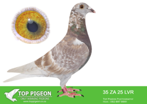 LOT 20 KITTEL AUCTION – ZA 25 LVR 35 -SIRE:416 BOTHA 24 ZA.Alias “NESTMATE TO 415/24” Strain: LOUIS BOTHA Color: Red Check Full Sister ofr Turbo Kittel of Du Preez & Deetlefs mated to Full Brother of Five Star. Turbo Kittel was the best pigeon in South Africa. 8x SANPO medal winner. Five Star is Africapro green jacket winner for Alwyn Bester.———-DAM: 169 ZA 24 LVR.KITTEL. . Sire is a full brother to the dam of 7 x SANPO Gold medalist , also declared the ” Best Pigeon In The World ” ZA 20 PWDU 9849 alias ” Turbo Kittel ” (SISTER ABL 167 DAM TO TURBO KITTEL SOLD FOR R338 000.00 ON TOPPIGEON).SEE PEDIGREE!!!!